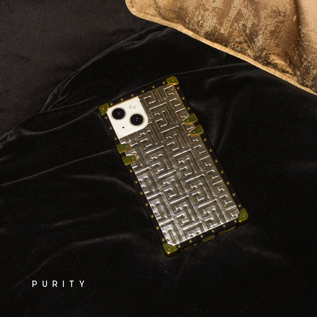 Luxury Samsung phone case with gold geometric pattern by Maison Purity.